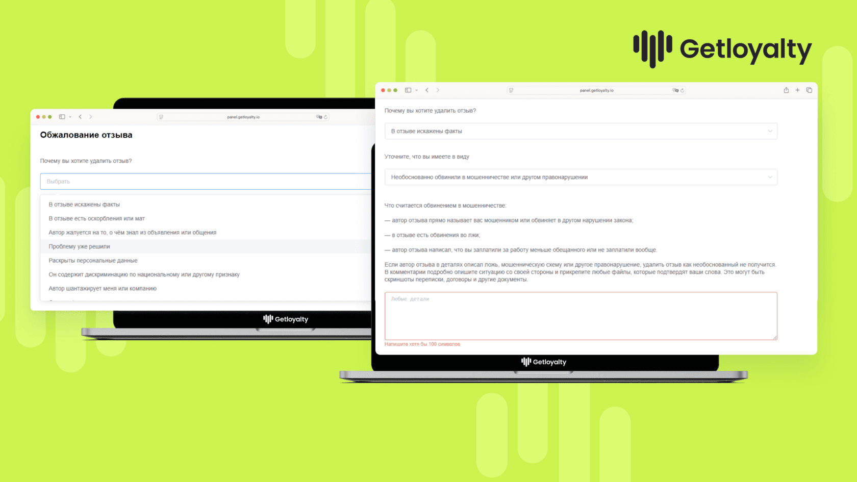 💚 Если вам нужна помощь с обжалованием негативных отзывов, стратегией роста рейтинга или вы хотите системно снижать долю негатива — команда ORM-специалистов Getloyalty готова взять задачу на себя: подготовка корректных обращений в поддержку площадок, работа с авторами отзывов, разработка сценариев ответов и долгосрочная стратегия по улучшению репутации.