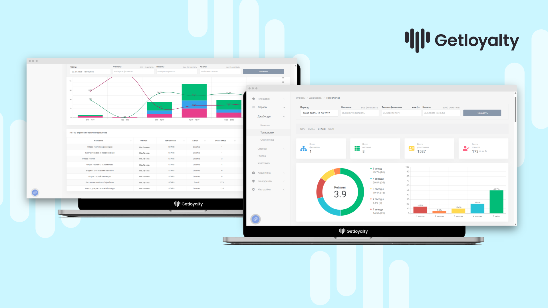 Getloyalty помогает видеть всю картину, ставить цели и быстро реагировать на отзывы — всё в одном окне.