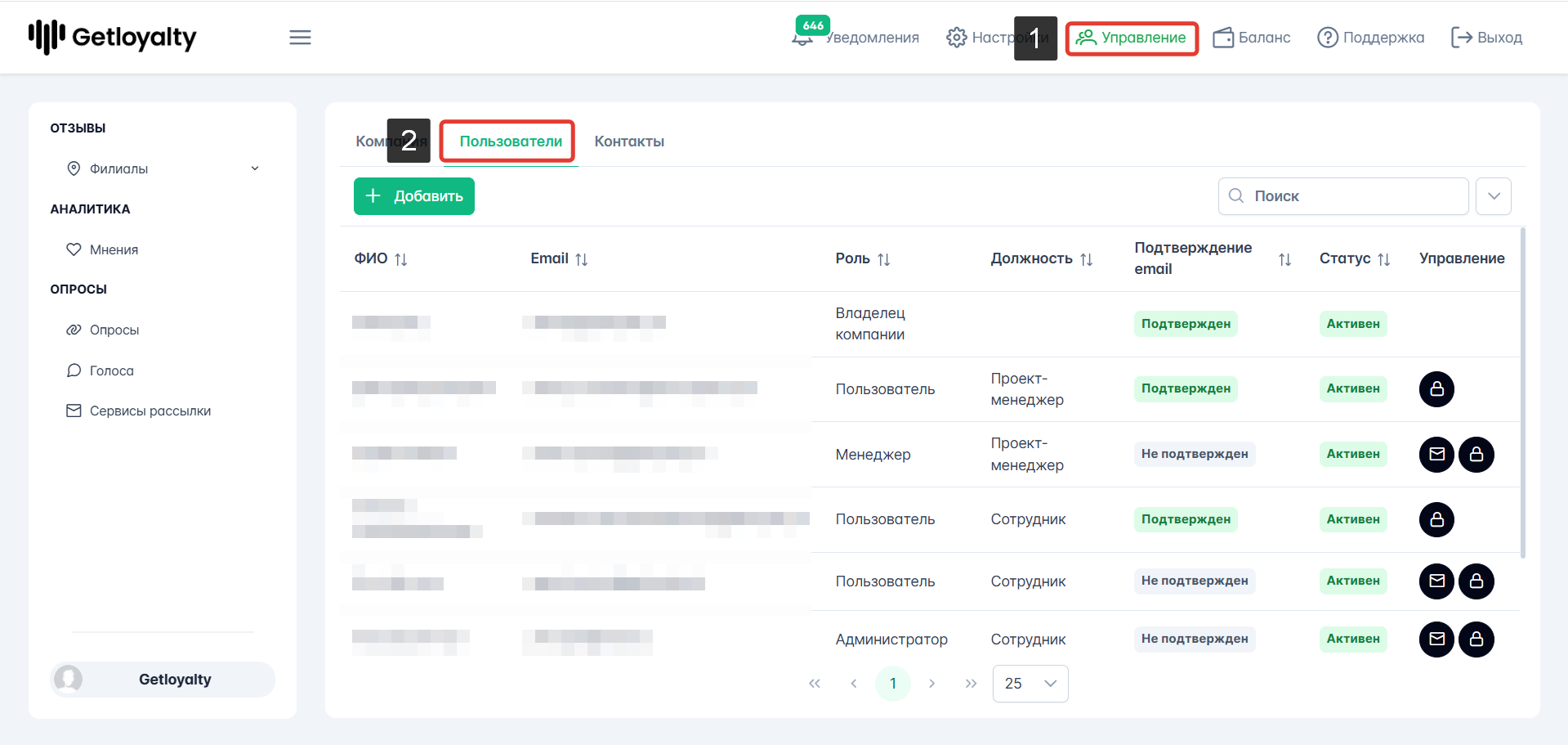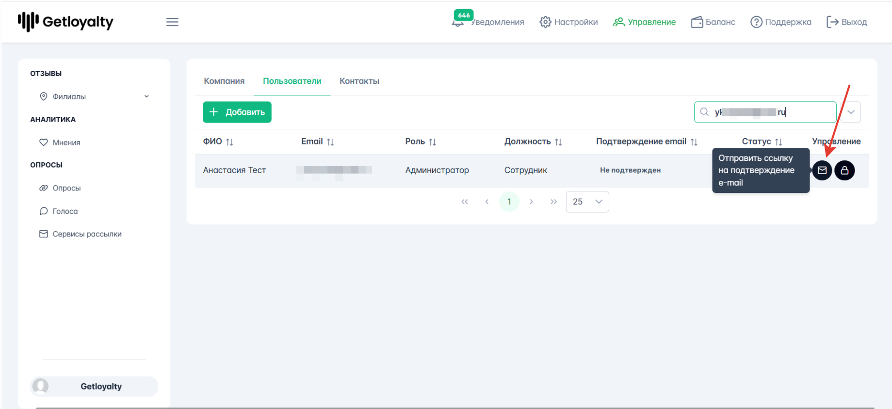 Если пользователь был добавлен в платформу Getloyalty, но письмо ему не пришло (письмо приходит практически сразу после добавления пользователя в платформу), то можно отправить ему ссылку через платформу.