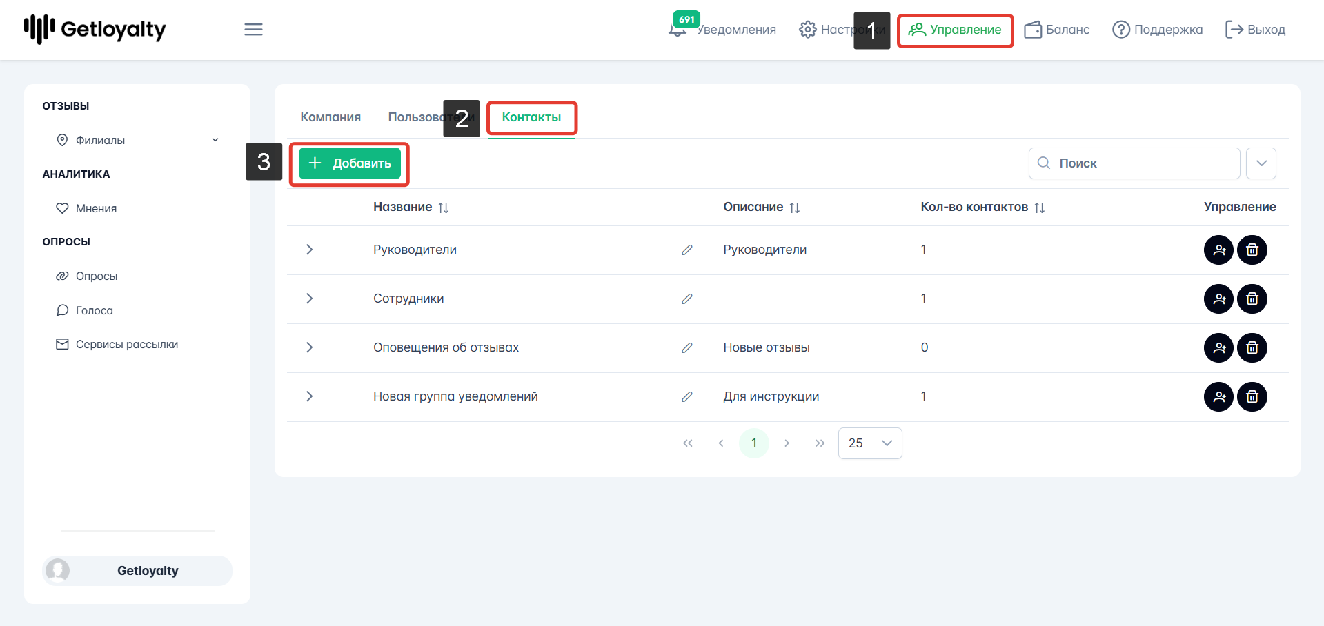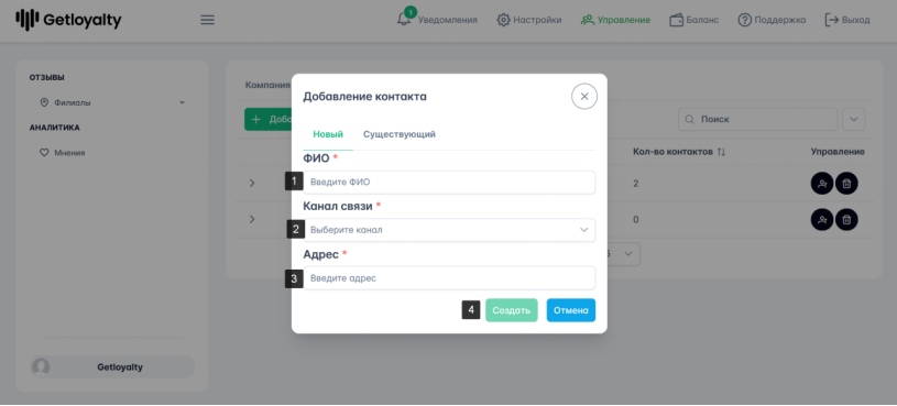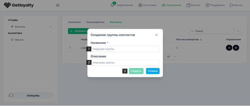 - Название - в этом поле нужно ввести название группы контактов. Название может быть любое, его будет видно только внутри Getloyalty. При необходимости его можно будет потом изменить.