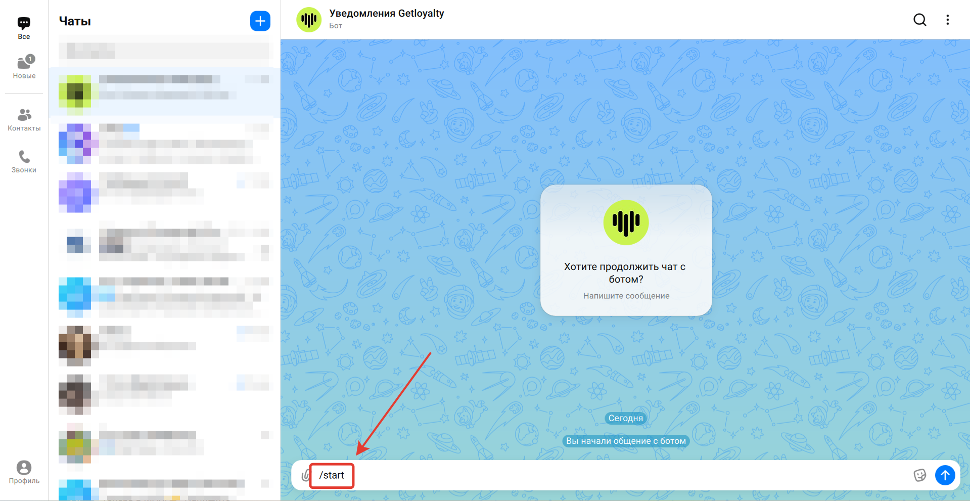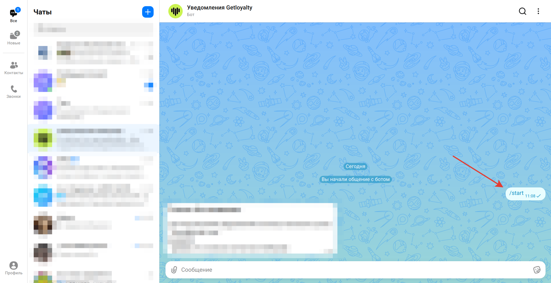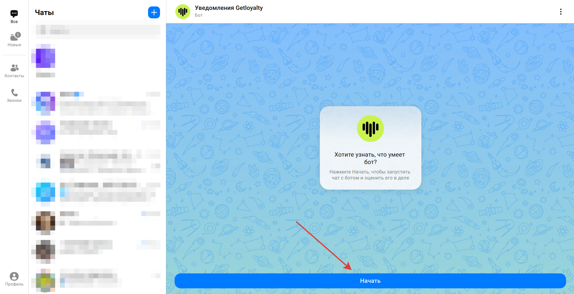 Если вы хотите получать уведомления индивидуально в личные сообщения, то найдите в Telegram официального бота @Getloyalty_new_bot