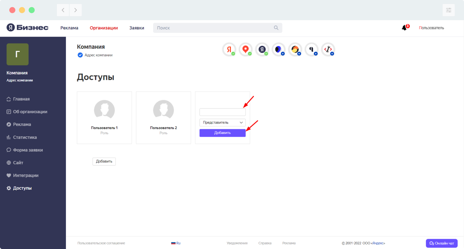Открыть доступ представителя на Яндекс