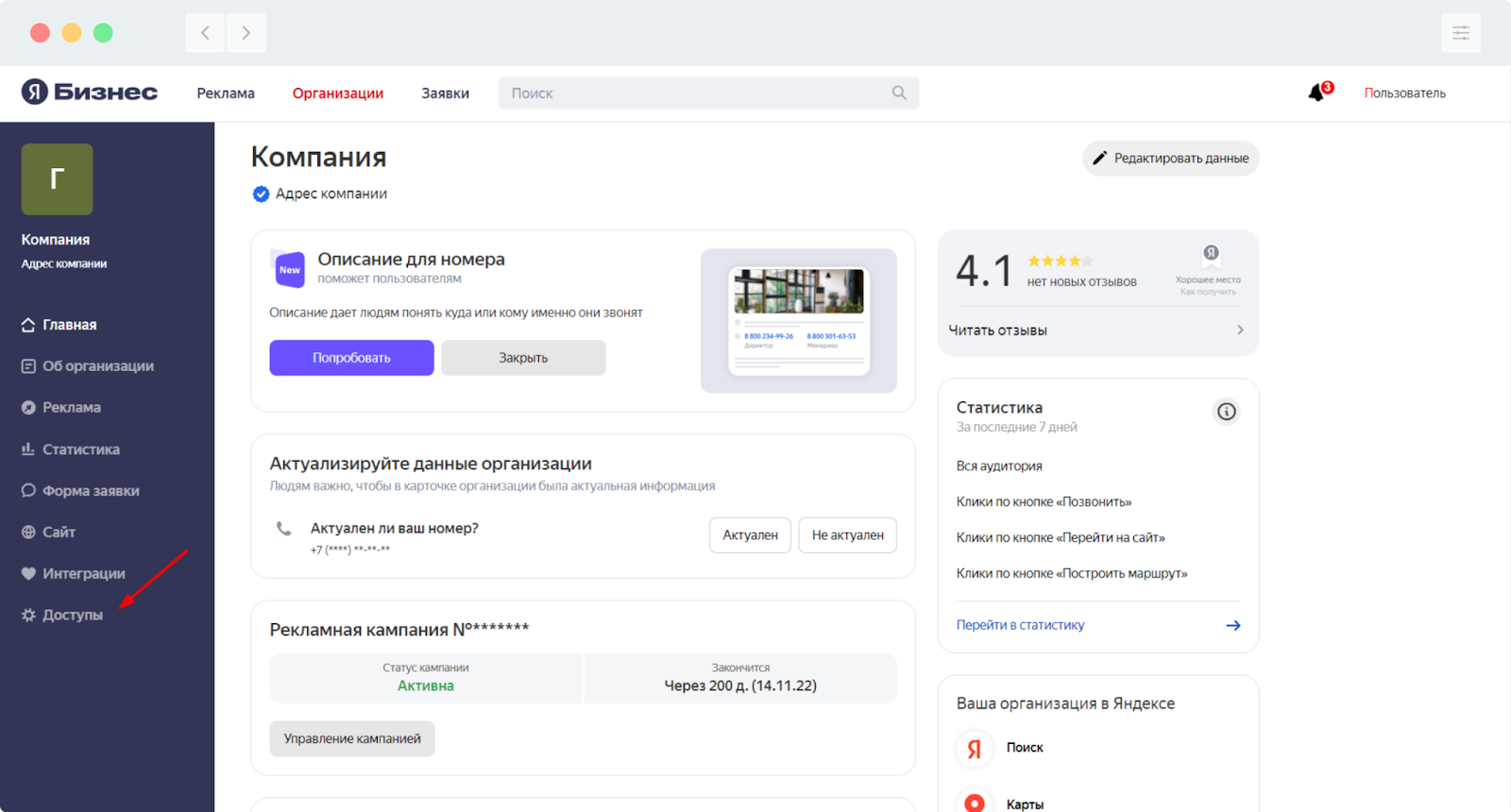 Важно! Обязательно сообщите в Getloyalty о предоставлении доступа, указав в сообщении название компании и филиала, для того, чтобы мы завершили настройку на своей стороне. После чего, вы сможете отвечать на отзывы, опубликованные на Яндекс, через платформу Getloyalty.